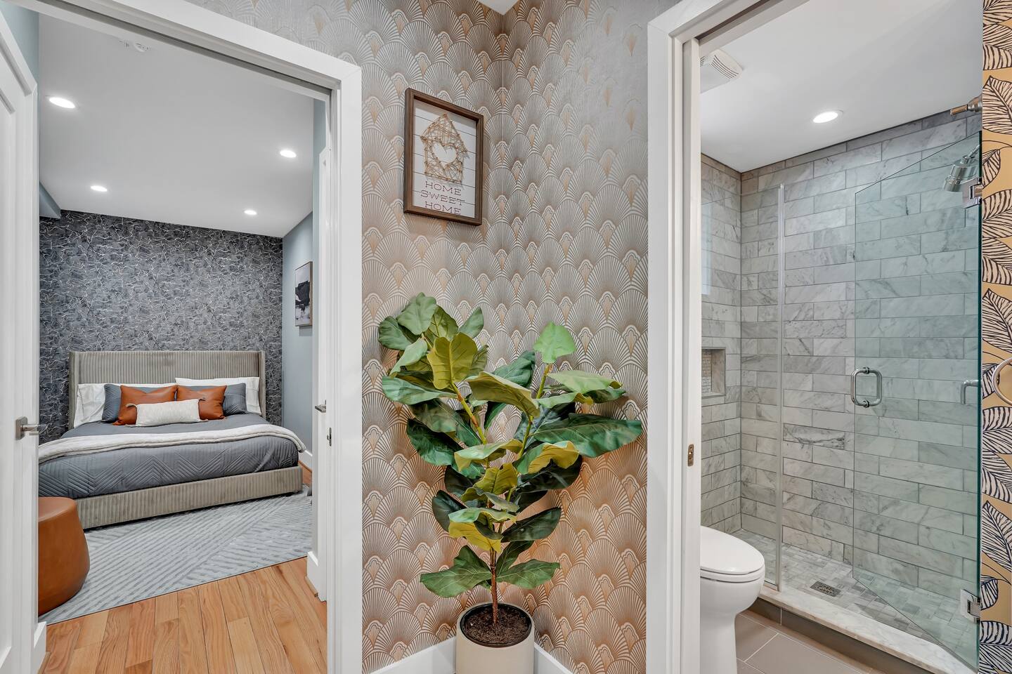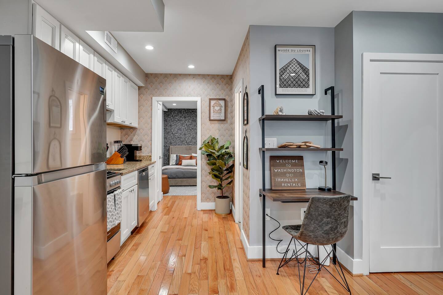 Guests enter through the street entrance. The unit features convenient keyless entry for easy check-in and checkout.